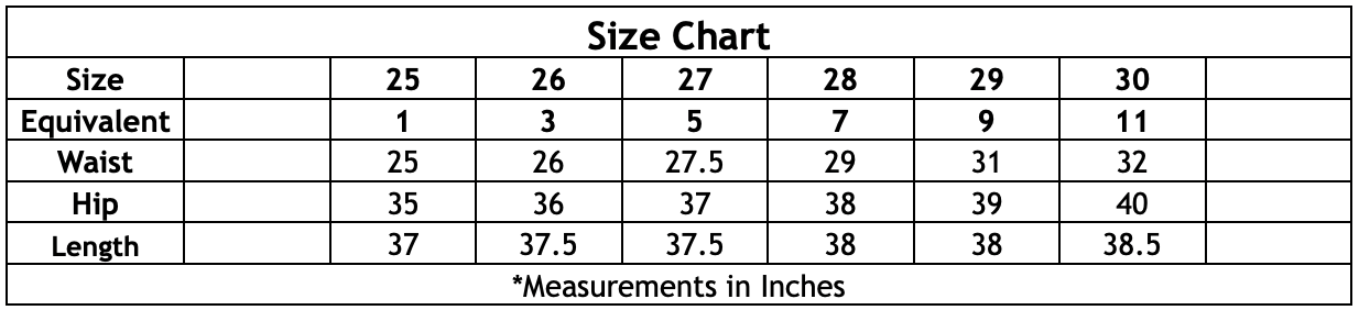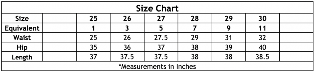 See below for size chart.