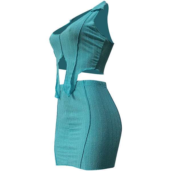 Collared Top Skirt Set