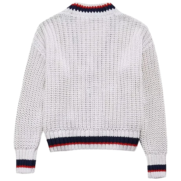 Add a touch of sporty sophistication to your boutique’s collection with this Women’s Varsity-Striped Knit Cardigan. Crafted from high-quality knit material, this cardigan offers both comfort and style. The bold navy, red, and white stripe detailing on the cuffs, hem, and neckline provides a preppy look that’s perfect for your customers who love timeless, versatile pieces. With its button-up front and two patch pockets, this cardigan is not only fashionable but also functional—ideal for layering over casual or semi-formal outfits.