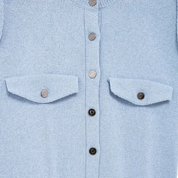 Add a touch of sophistication and charm to your store’s inventory with this Light Blue Button-Front Sleeveless Knit Cardigan. Designed with boutique owners in mind, this wholesale piece is perfect for layering or wearing solo, offering versatility and timeless appeal. The soft-knit texture ensures comfort, while the sleek button-down design paired with practical front pockets enhances its functionality. Ideal for transitional weather, this cardigan will be a go-to favorite for your customers, blending both classic and modern style effortlessly.