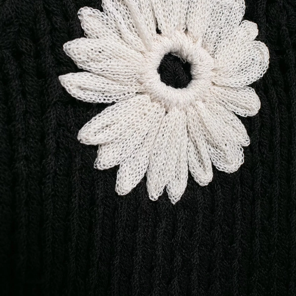 Introduce a touch of bohemian flair to your boutique with this charming knit crochet vest, adorned with two eye-catching daisy appliqués. Perfect for layering, this piece features a rich, textured weave that enhances its unique style. The deep black color serves as a stunning backdrop, making the white floral accents truly pop. Ideal for the free-spirited customer who loves to stand out, this vest brings versatility and style to any wardrobe. It’s a must-have for spring and summer collections, inviting customers to explore playful and expressive fashion.