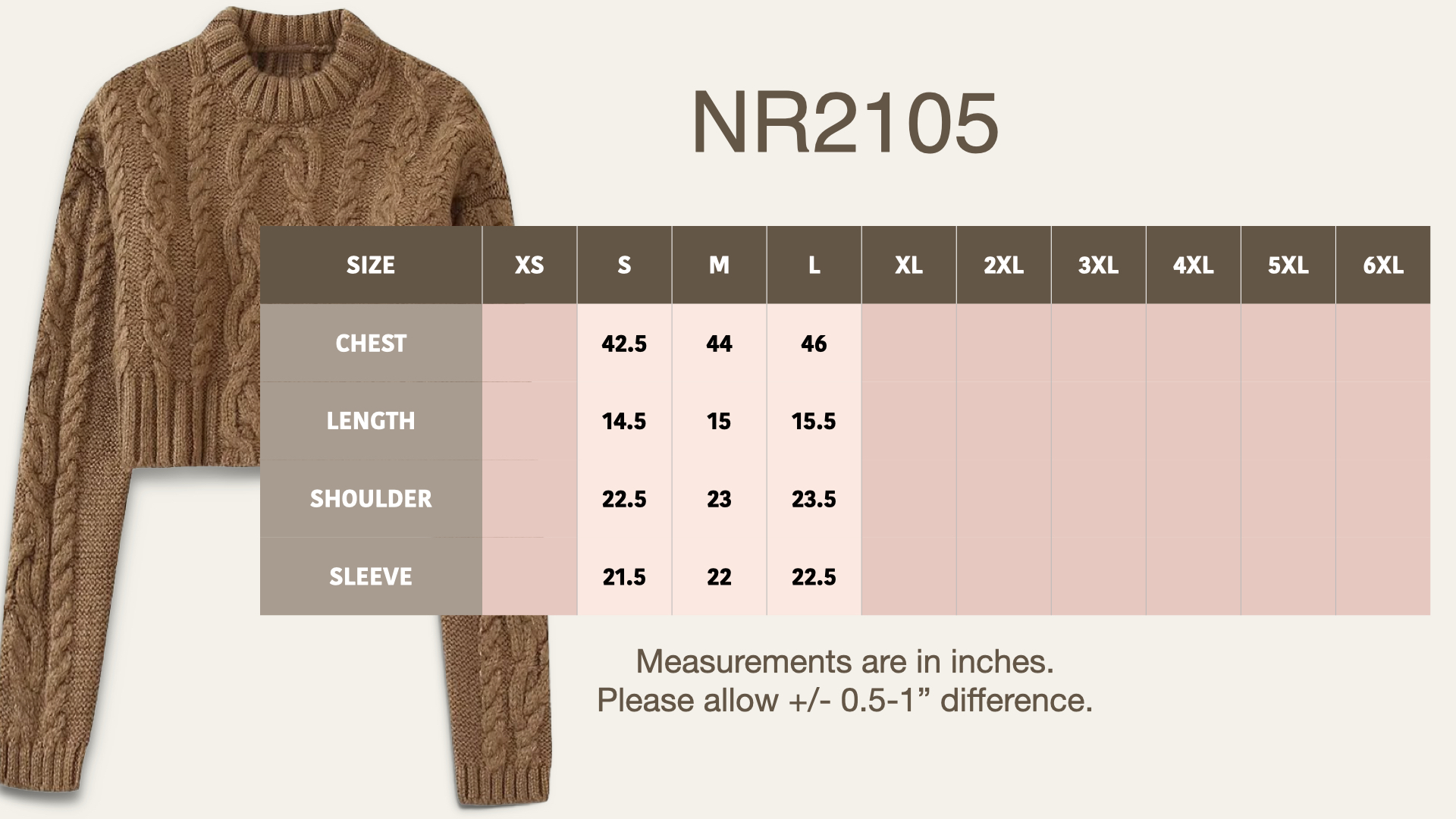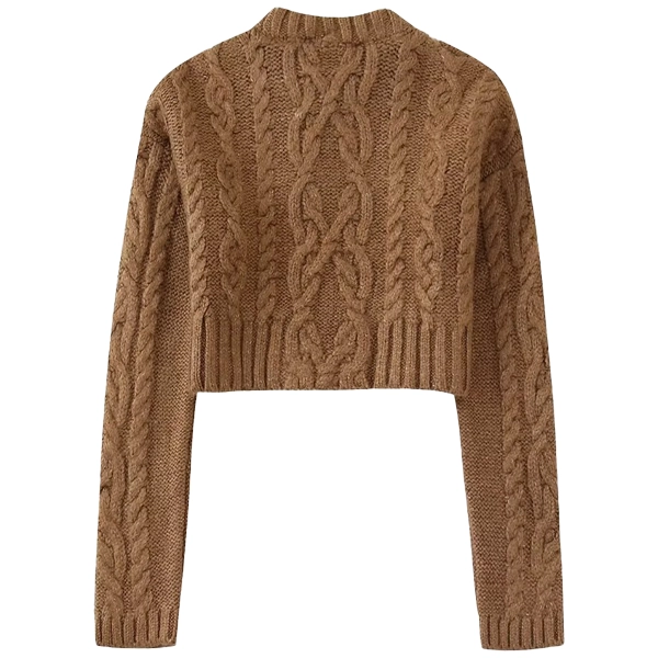 Step up your knitwear game with this cropped cable-knit sweater, designed to bring both warmth and style to your boutique’s collection. Featuring a rich, tan hue, this sweater exudes cozy sophistication with its chunky knit design and intricate cable-knit patterns. The cropped fit pairs perfectly with high-waisted bottoms, offering a chic and modern silhouette. Whether layered for fall or worn solo in cooler weather, this versatile piece is a must-have for any seasonal collection.