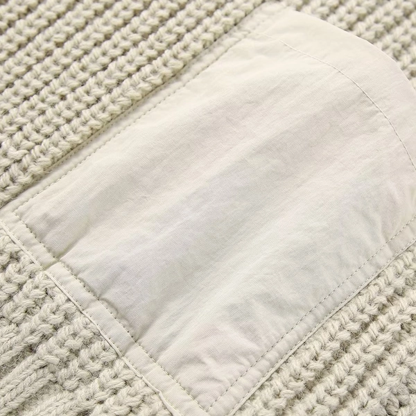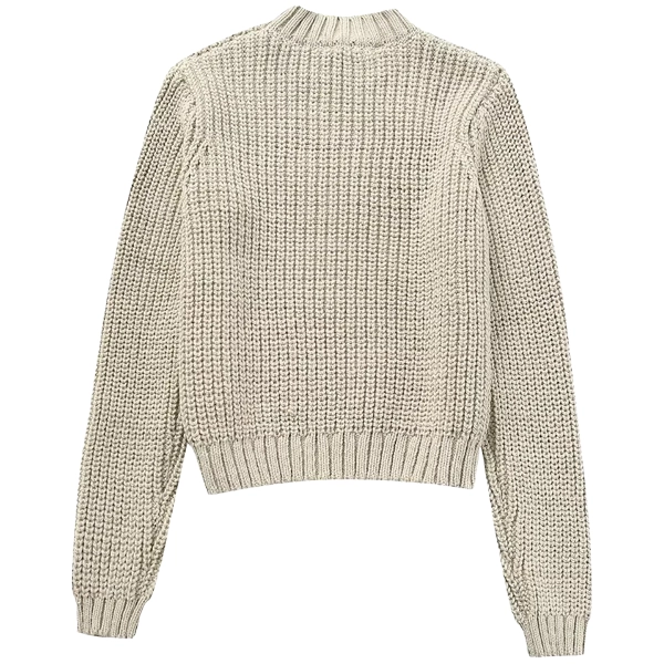 The neutral beige tone ensures easy styling, while the unique patch pocket detail adds a functional yet trendy touch. The slightly cropped fit with a classic crew neck and ribbed cuffs ensures this sweater will pair effortlessly with high-waisted jeans, skirts, or leggings.