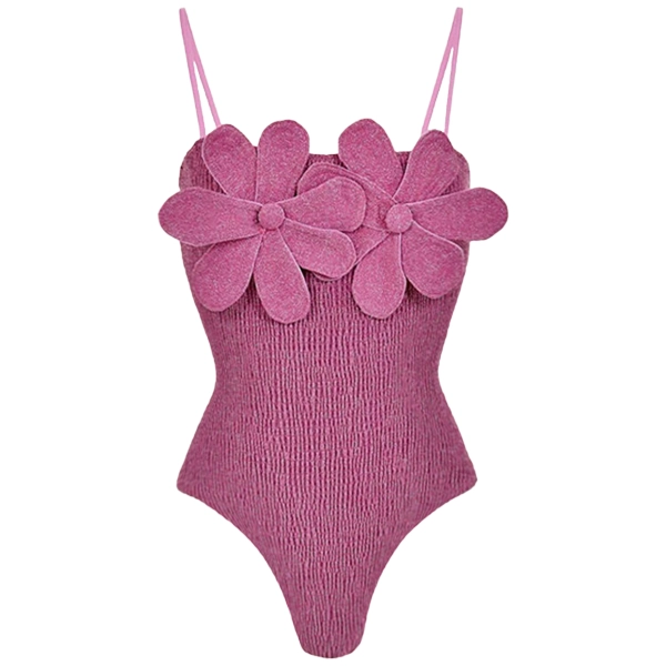 Transform your boutique’s swimwear collection with this enchanting Glamour Bloom Women’s Swimwear Set. Featuring a chic purple monokini adorned with oversized floral appliqués and a coordinating draped skirt, this set exudes sophistication and charm. The smocked texture of the one-piece swimsuit provides a flattering fit, while the adjustable straps ensure comfortable support. The ruched skirt, made with glittering fabric, adds a touch of glamour, making it the perfect ensemble for beachside strolls or poolside lounging.