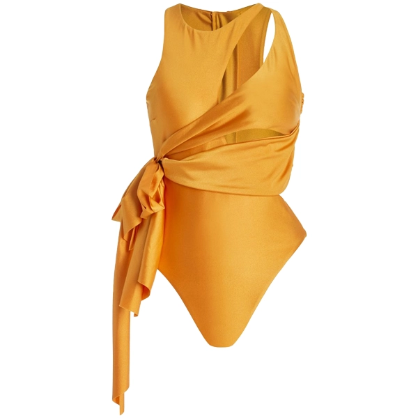 - Monokini: Crafted with a unique wrap-around sash detail, this one-shoulder swimsuit accentuates the curves while offering a secure, flattering fit. The sleek design and vibrant orange hue make it a showstopper for any beach day or resort getaway.