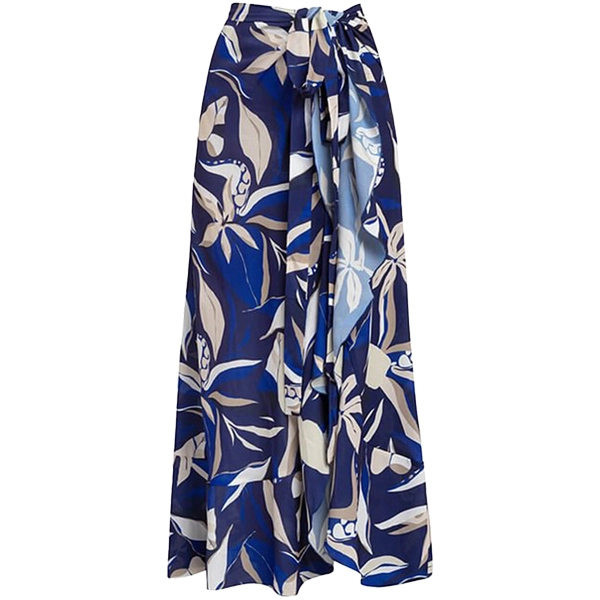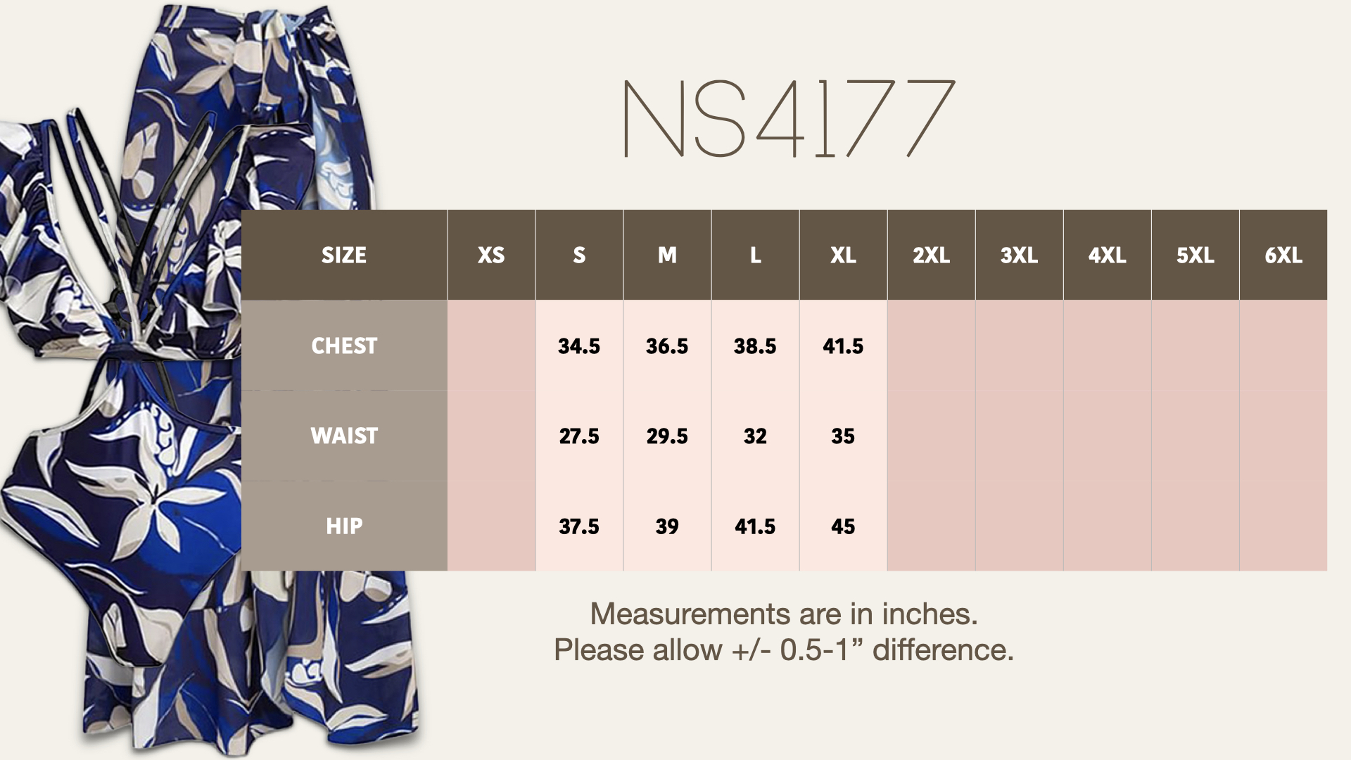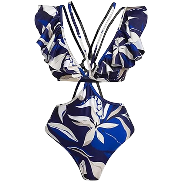 Elevate your boutique’s summer collection with this bohemian-inspired ruffle monokini and matching flowy skirt set. Designed for women who love to make a statement, this set features a stunning deep blue and neutral floral print, bringing a perfect blend of elegance and tropical vibes.