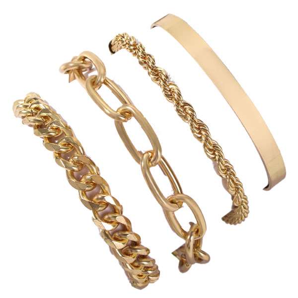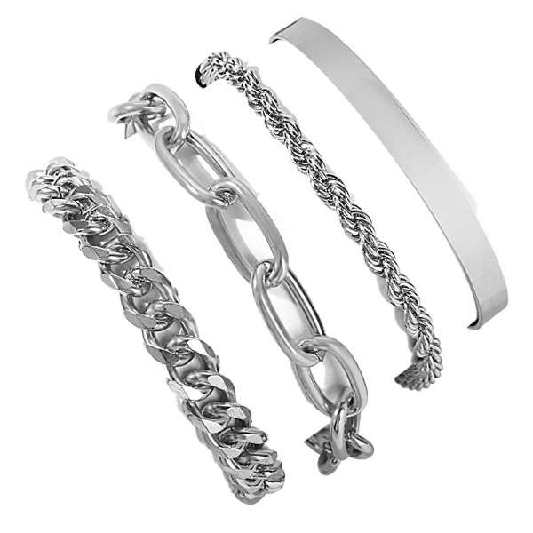 -4 Bracelets in 1 (a cuff, rope chain, cuban link, cable link)